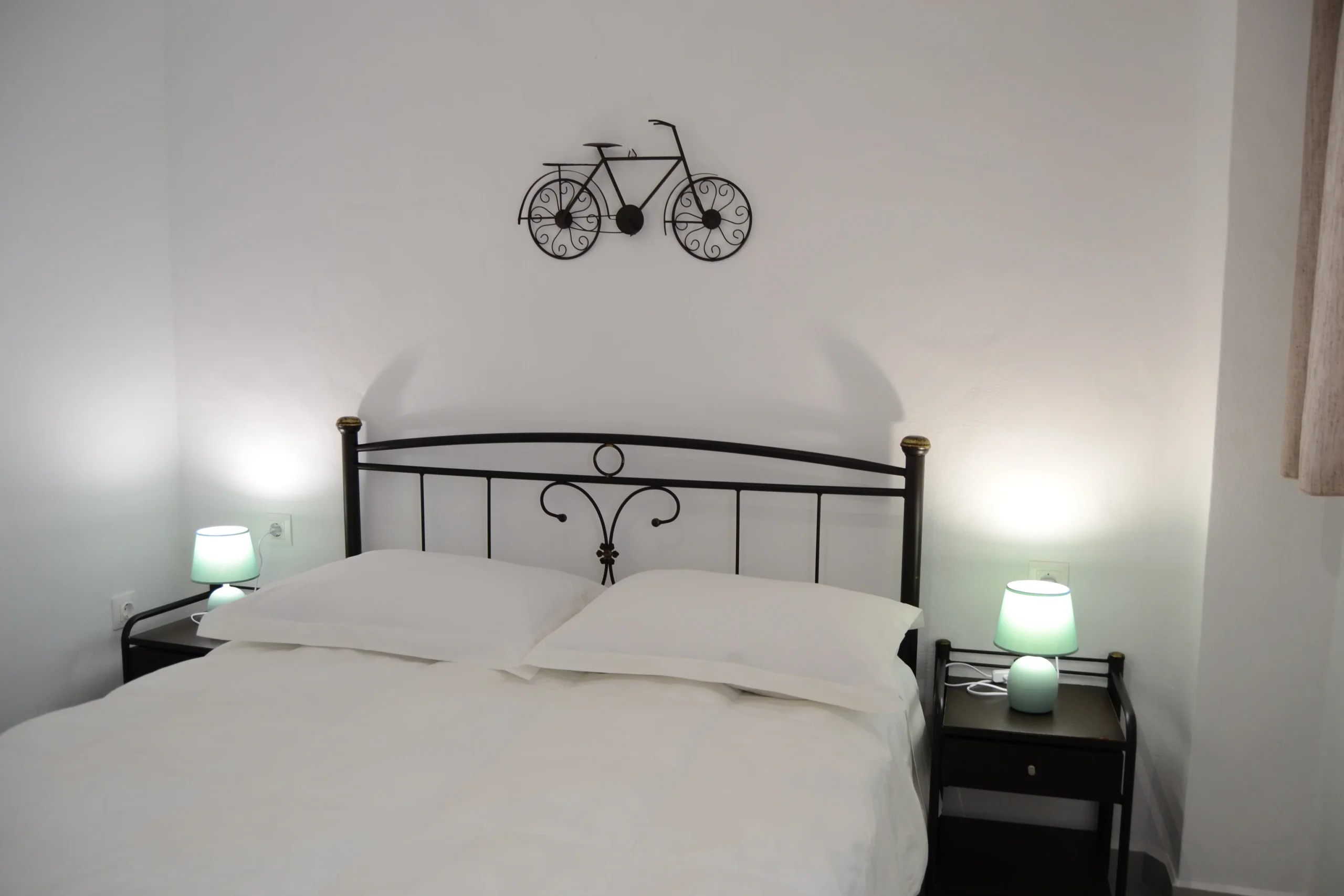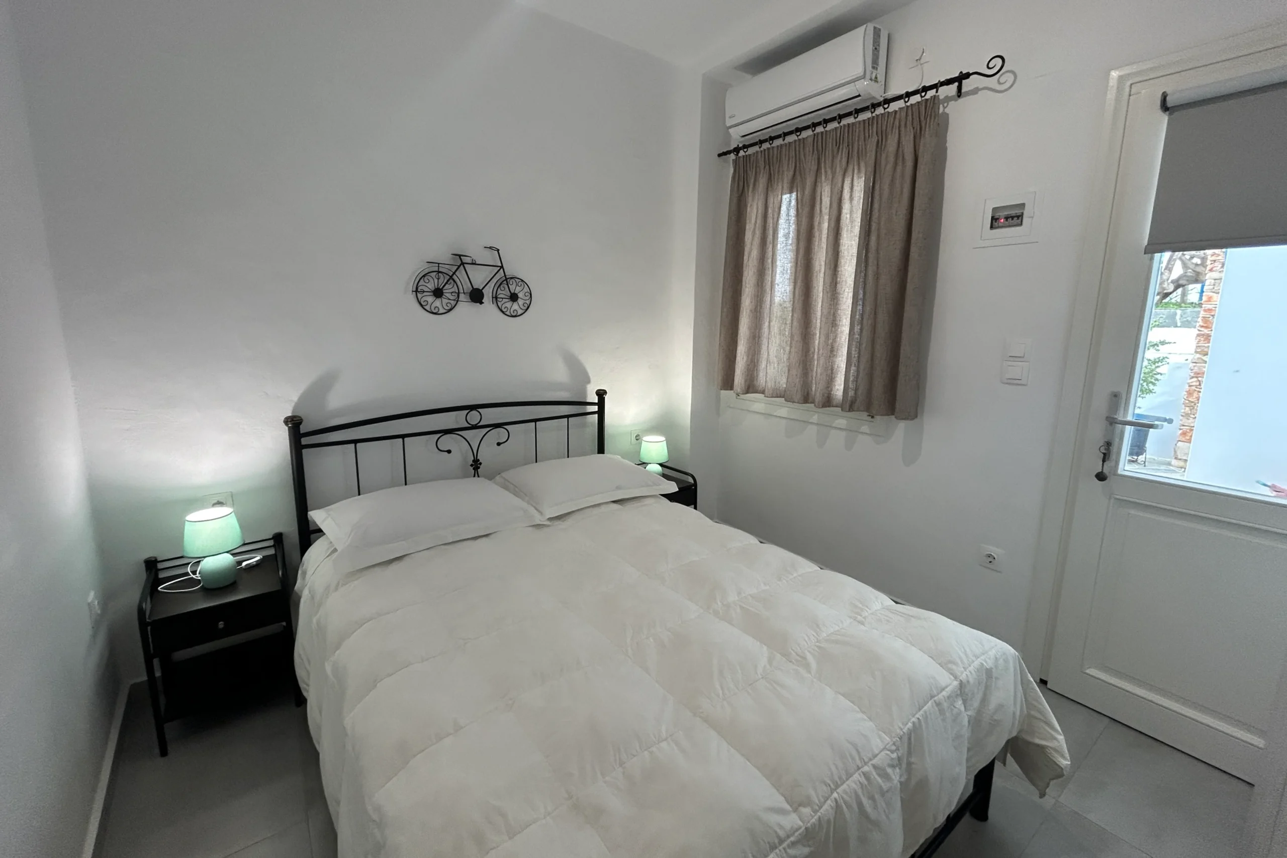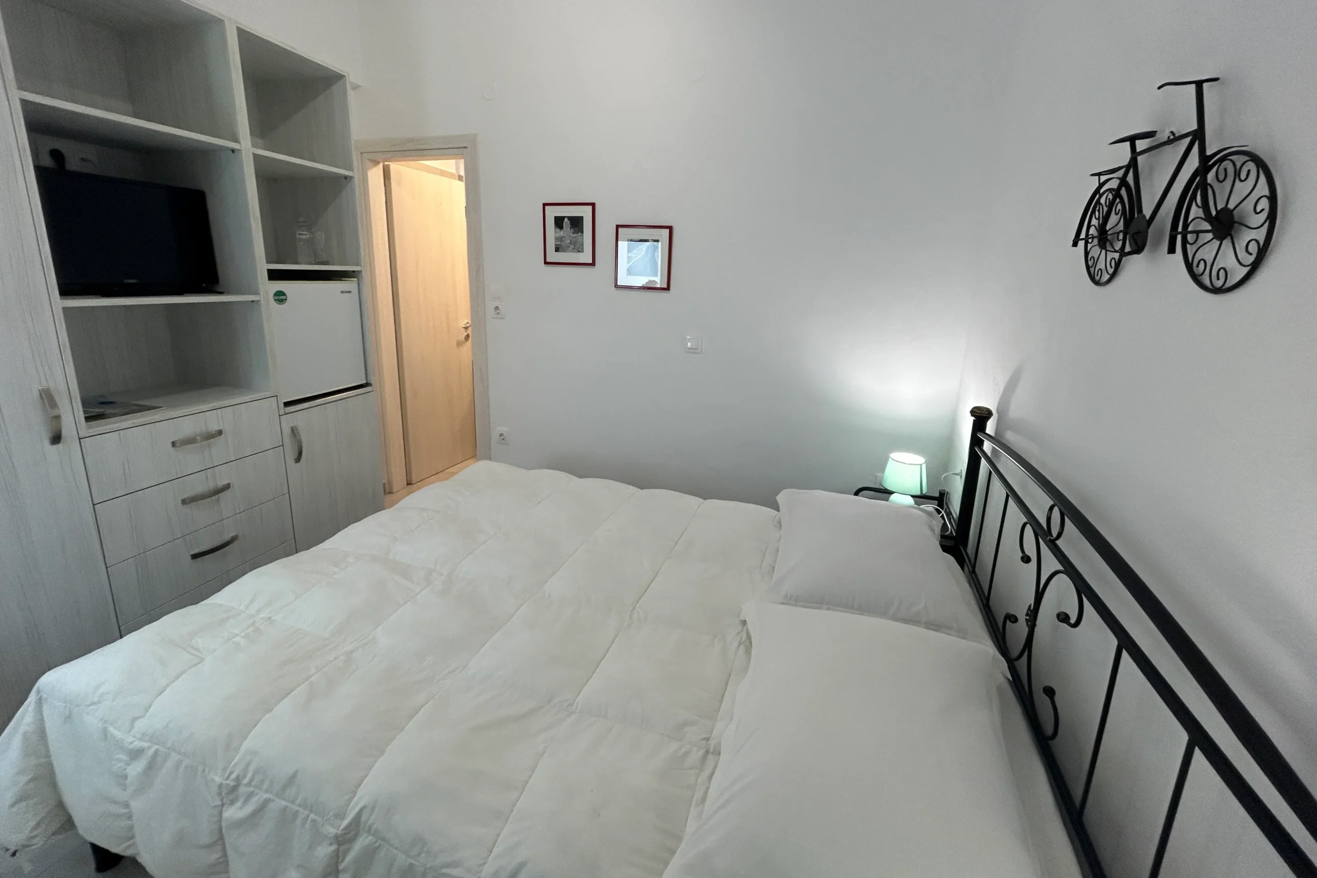 Το δωμάτιο διαθέτει ένα μεγάλο διπλό κρεβάτι, προσεκτικά τοποθετημένο για άνετο και ξεκούραστο ύπνο. Η ποιότητα των στρωμάτων και των λευκών ειδών εξασφαλίζει ευχάριστη ξεκούραση, ενώ οι επισκέπτες μπορούν να απολαύσουν στιγμές ηρεμίας με απόλυτη άνεση.